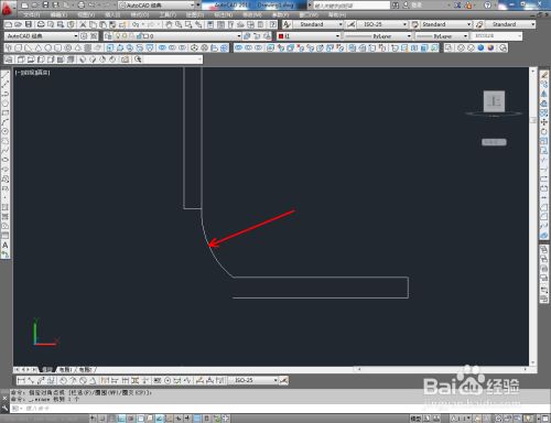 点击【多段线东西】绘制出一条多段线后,点击【圆弧东西】,按图示绘制两条圆弧线并将圆弧线的两个端点毗连起来;