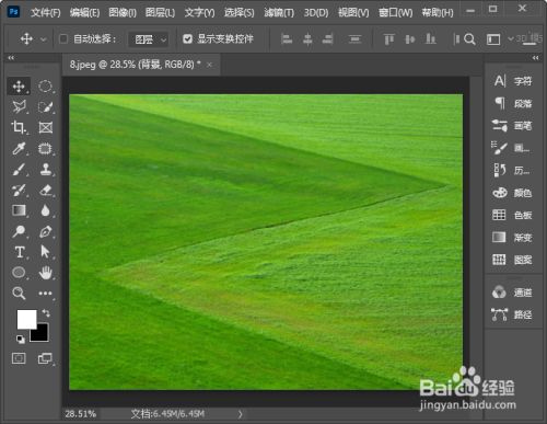 我们用ps打开一张草地的图片,如图所示。