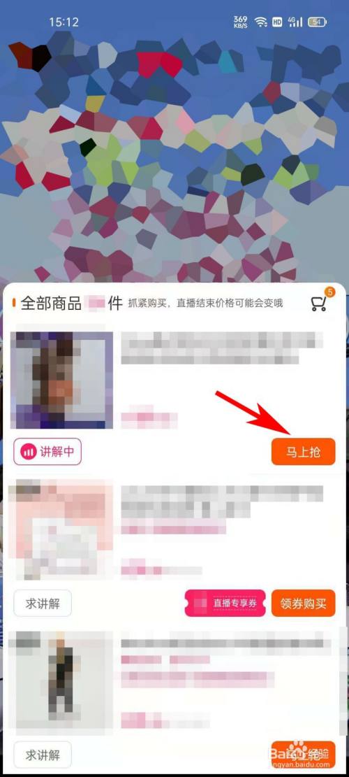 进入“直播商品列表”界面,点击需要采办商品的“顿时抢”按钮。