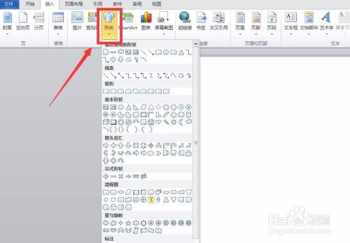 首先,我们打开word,点击页面上方菜单栏的【插入】,找到【外形】。