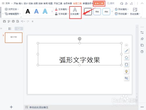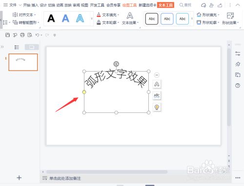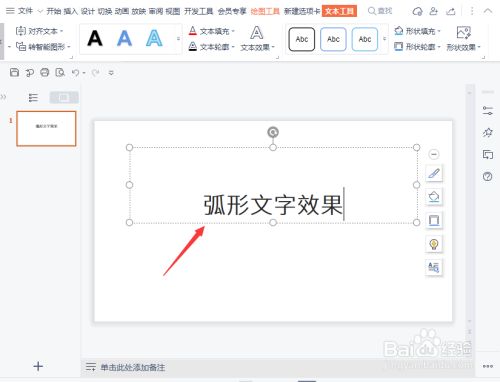 我们可按照本身的需要调整文本框的大小,让文字酿成弧形结果即可,如图所示。