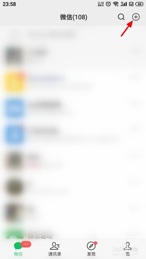 打开微信在首页,直接点击【+】;