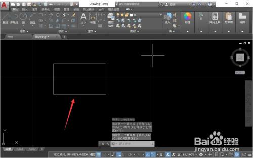 打开CAD,点击菜单栏中的矩形画图东西画一个矩形。