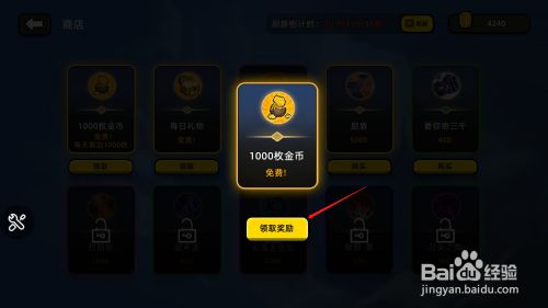 工具/原料红米note4xMIUI10.1传说之旅1.0方式/步骤1打开手机桌面,点击传说之旅的图标。2进入游戏界面后,点击右侧的商铺按钮。3在商铺页面中,点击1000枚金币下方的领取按钮。4然后点击领取奖励按钮。5点击之后,金币就领取当作功了,如图所示。END注重事项如有帮忙,请点赞撑持一下。