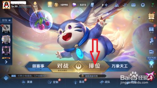 在王者荣耀本家儿页点击以下位置处的【排位】