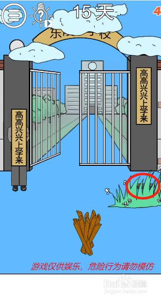 工具/原料联想小新13window10方式/步骤1首先扒开草丛,拿到藏在草丛里面的火柴2然后翻开黉舍大门右侧的春联3然后拿走藏在春联后面的海绵4接着利用火柴点燃黉舍门前的柴堆5然后把海绵放在黉舍门口6接着继续利用火柴点燃一次柴堆7最后点击海绵,我们就可以经由过程海绵爬进黉舍了END