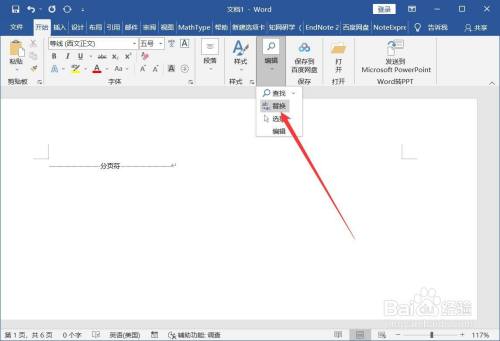 返回文档,点击【起头】-【编纂】-【替代】。
