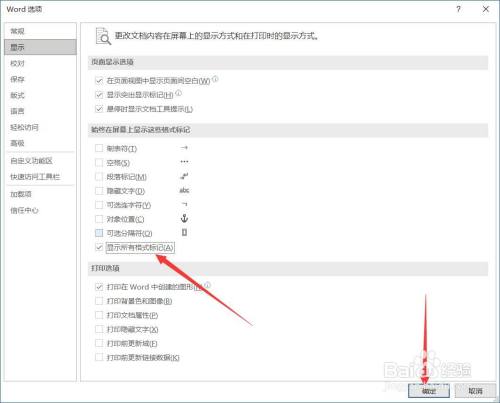 切换到显示选项卡,勾选【显示所有格局标识表记标帜】,点击确定。