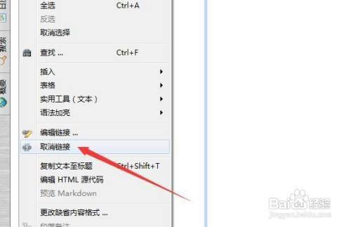 点击了编纂菜单之后,弹出了下拉菜单选中为打消链接选项。