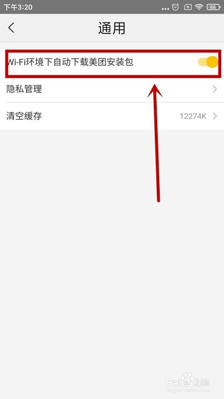 进入【通用】页面,点击【WiFi情况下主动下载美团安装包】选项。