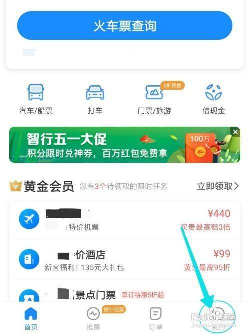 首先打开智行火车票后,进入到“我的”页面;