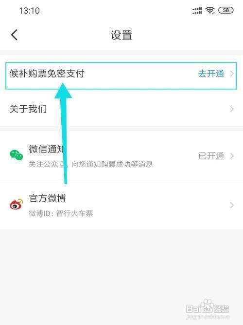 在设置中点击第一项“候补购票免密支付”按钮;