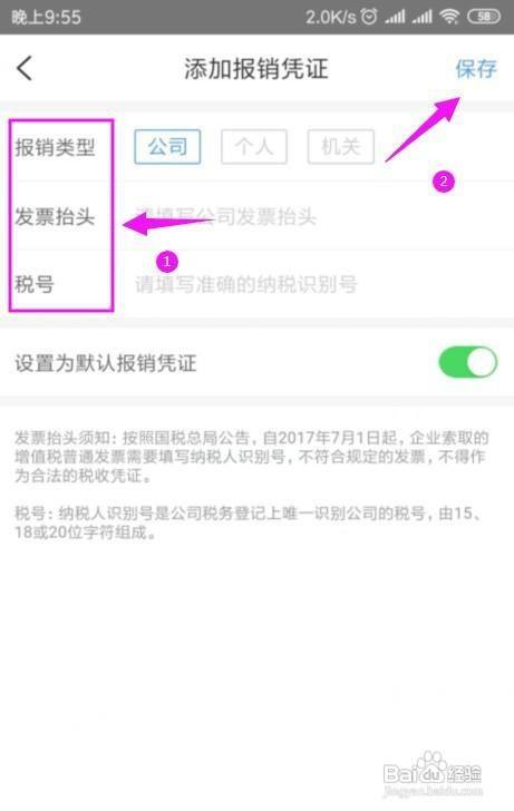 接着输入【发票昂首+税号】,点【保留】就OK,