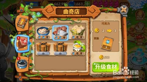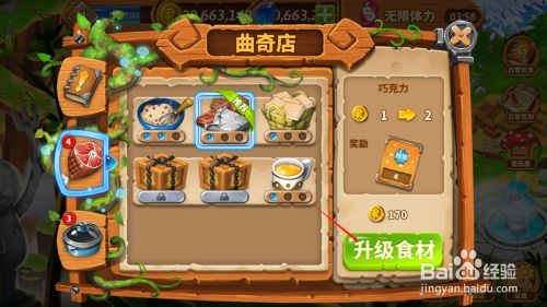 工具/原料红米note4xMIUI10.1烹调小镇1.0方式/步骤1打开手机桌面,点击烹调小镇的图标。2进入游戏界面后,点击曲奇店。3然后点击左侧的食材按钮。4点击绿色的进级食材按钮。5点击之后食材就进级当作功了,如图所示。END注重事项如有帮忙,请点赞撑持一下。