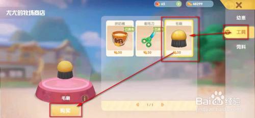 设置数目为“1”,点击“采办”即可获得毛刷。