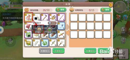 工具/原料荣耀9xEMUI10.1.0.132四时物语1.1.10方式/步骤1来到宠物边,点击“查看”。2点击“拾回”。3点击选中左侧需要放入的物品,点击“放入”。4设置数目,点击“放入”即可将该物品放入宠物背包。45点选右侧宠物背包中的物品,点击“掏出”。6设置数目,点击“掏出”即可将该物品从宠物背包掏出。END