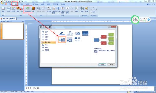 插入——SmartArt——程度条理布局,双击插入到PPT中。