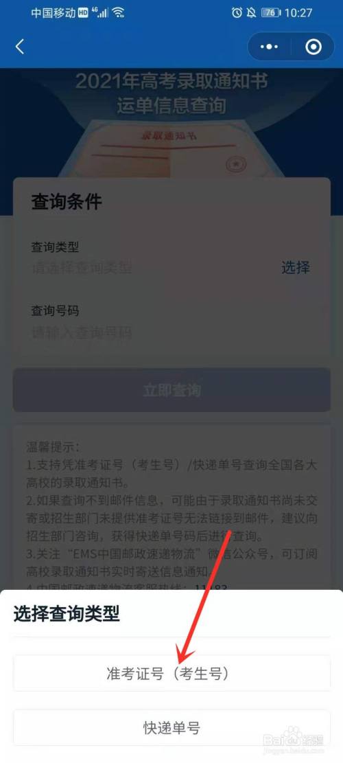 选择查询类型,例如点击【准考据号】。