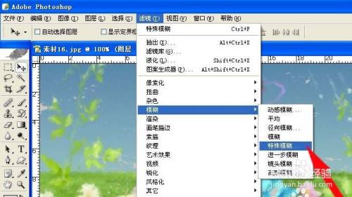 6、鼠标左键在菜单【滤镜】>>【恍惚】>>【特别恍惚】,此时,在弹出的【特别恍惚】窗口上,设置结果。