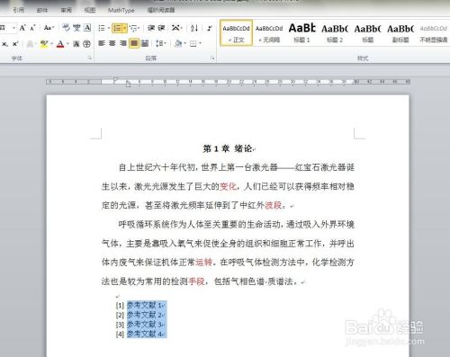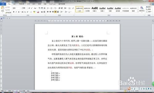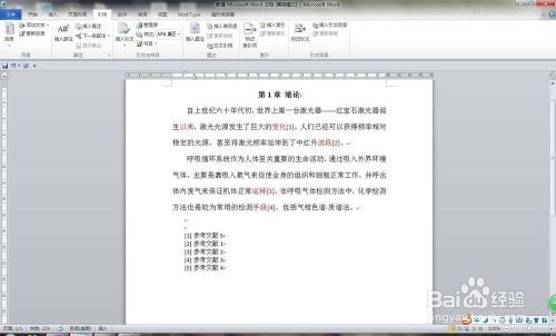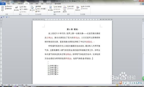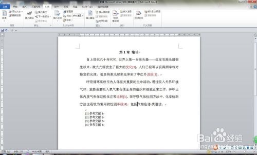 首先打开一篇文档,参考文献已经列出,为演示便利,红色字体后面需要依次引用文献。