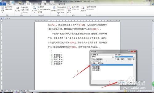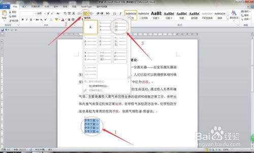 然后对参考文献进行编号。将所有的参考文献选中,打开编号库,选择右上角的编号形式,参考文献的编号就完当作了。