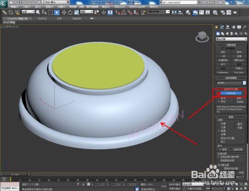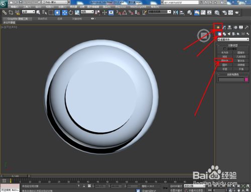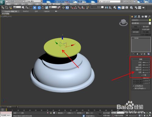 点击【建立】-【几何体】-【圆柱体】,按图示绘制一个圆柱体模子并调整好圆柱体与底座模子的位置关系(如图所示);