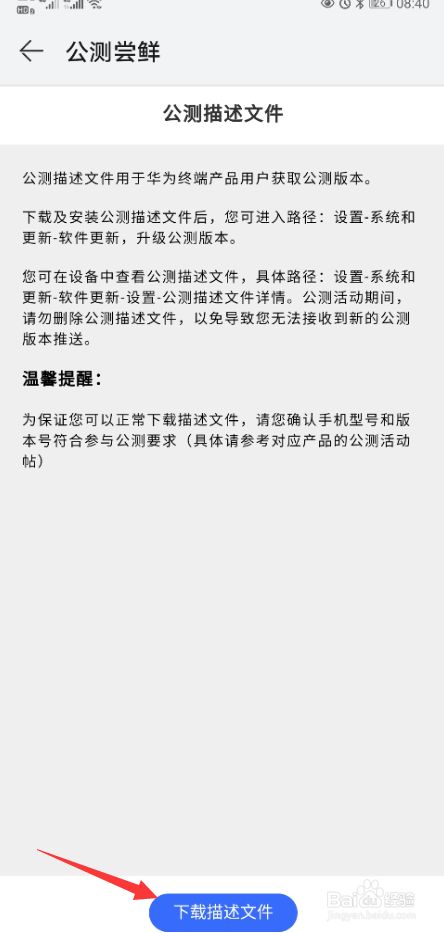 点击选择下载描述文件;