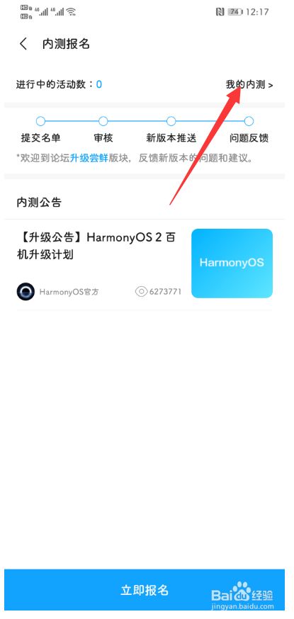进入内测报名界面后,点击“我的内测”。