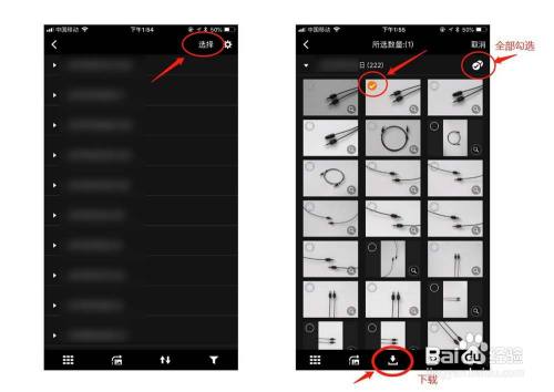 点击选择,然后选择响应的日期,可以单选图片或者全选所有图片,选择完今后点击下载图标,这个时辰图片就会下载到手机相册里面啦