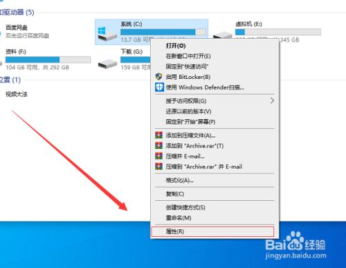 第二个方式,就是进入“我的电脑”,右键点击C盘,并选择“属性”。