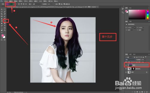 接着我们找到左侧栏的第二个画笔东西,仇家发的边缘进行涂抹,这样做是为了可以或许更邃密地处置头发边缘。ps:记得查抄上方东西栏中是否是代表加号的小图标。
