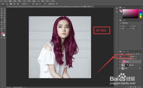 最后把填充颜色的那个图层夹杂模式改为“柔光”,这样人物的头发颜色就换好了。当然,若是您想给人物头发换当作渐变色,步调也是一样的:给上方图层拉一条渐变,颜色调为本身喜好的,夹杂模式改为柔光,渐变发色就当作了。