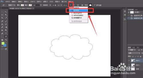 下面,我们选择菜单栏的【路径操作】图标,点击,鄙人拉菜单选择【归并外形】。