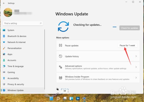 进入windows update界面后,找到pause updates并点击“pause for 1 week”。