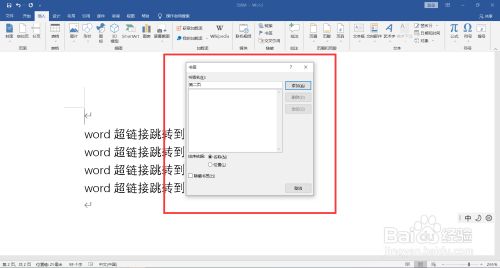 确认对话框后,选中文字酿成超等链接,按在CTRL,点击文字,跳转到第二页。