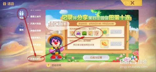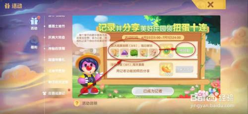 工具/原料荣耀9xEMUI10.1.0.132摩尔庄园0.13.21051608S方式/步骤1进入游戏本家儿界面,点击“活动”。2点选“活动”-“庄园巡纪行”,点击尚未完当作摄影的场景。3点击“确定”主动寻路前去该场景。4达到场景,点击拍照机图标。5点击拍照机图标完当作摄影,点击“×”封闭。6完当作所有5个场景的摄影使命,点击“活动”-“庄园巡纪行”,点击“可领取”即可获得10颗豆豆币。END
