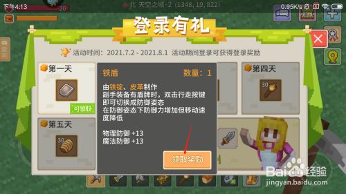 工具/原料红米note4xMIUI10.1奶块3.1方式/步骤1打开手机,找到并点击奶块。2进入游戏界面后,点击礼盒按钮。3点击绿色的可领取按钮。4点击领取奖励按钮。5点击之后登录奖励就领取当作功了。END注重事项但愿本条经验对您有所帮忙