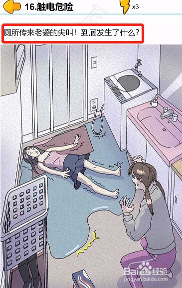 工具/原料联想小新13window10方式/步骤1首先我们需要找到妻子尖叫的原因2本来是女儿触电了,怪不得妻子会发出尖叫3水也是导体,若是碰着的话我也会触电的4旁边有一双靴子,若是穿上靴子再曩昔就不会触电啦5漏电的泉源处处置失落就可以削减对女儿的二次危险啦6这样子总算把女儿给解救回来了END