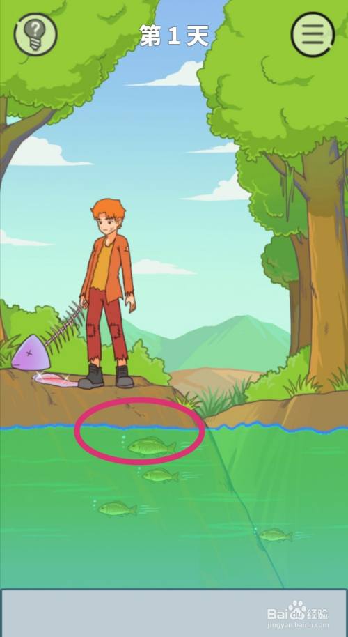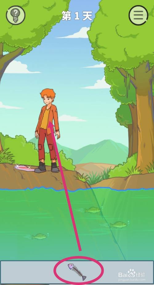 当那条鱼颠末男本家儿时,点击它,就可以用鱼骨头把那条鱼砸晕。