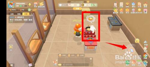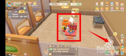 接近餐厅中的红色烹调台,点击右下角的操作按钮。
