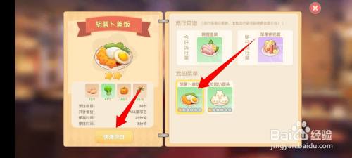 选中胡萝卜盖饭,点击快速烹调的按钮。