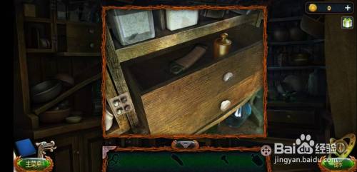 在餐桌右侧有一些瓶瓶罐罐,在中心那个小玻璃瓶里找到一把凿子,在厥后方一个碗里面获得火柴,用它点燃椅子上的蜡烛,可以融化蜡块,获得抽屉把手。