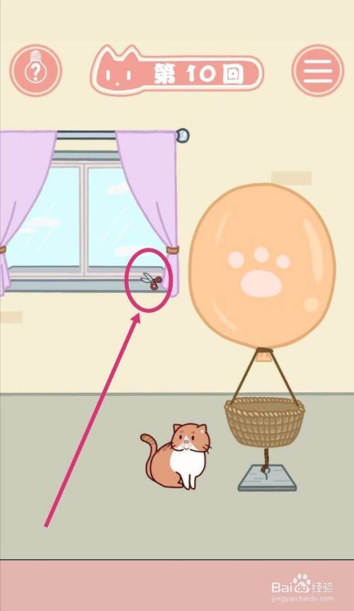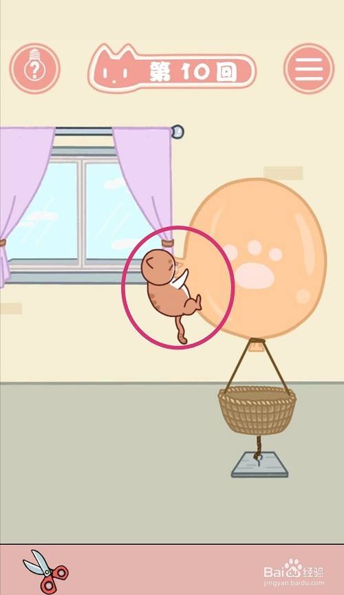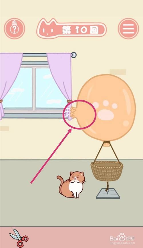 气球被剪出一个洞后,点击【破洞处】。