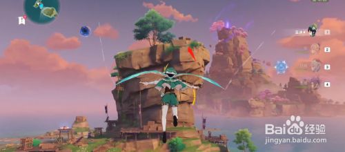 运行原神,首先打开地图,来岛刃连岛,登上大岛的山头和笼子里的人进行对话。