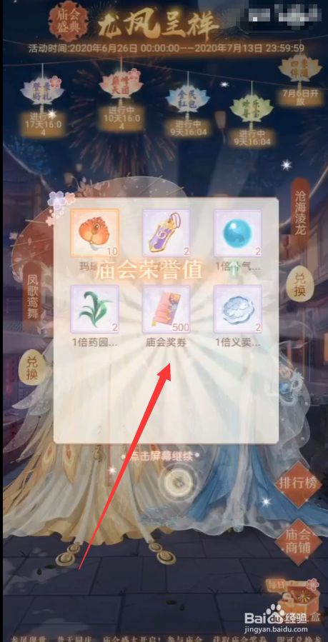 返回庙会盛典获得界面,点击选择兑换;