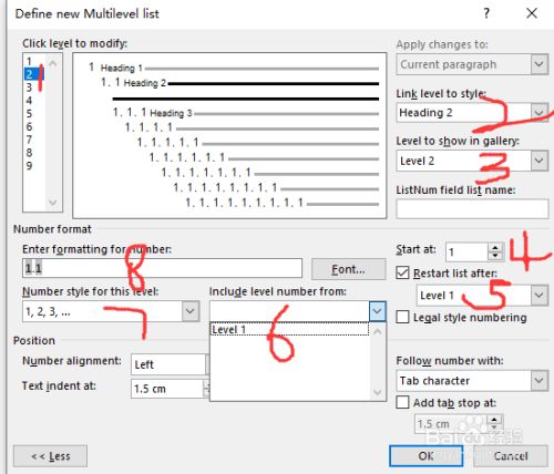 二级题目设置和以及题目近似,可是多了“inlude number from level 1”这个设置。设置步调如图标号所示。