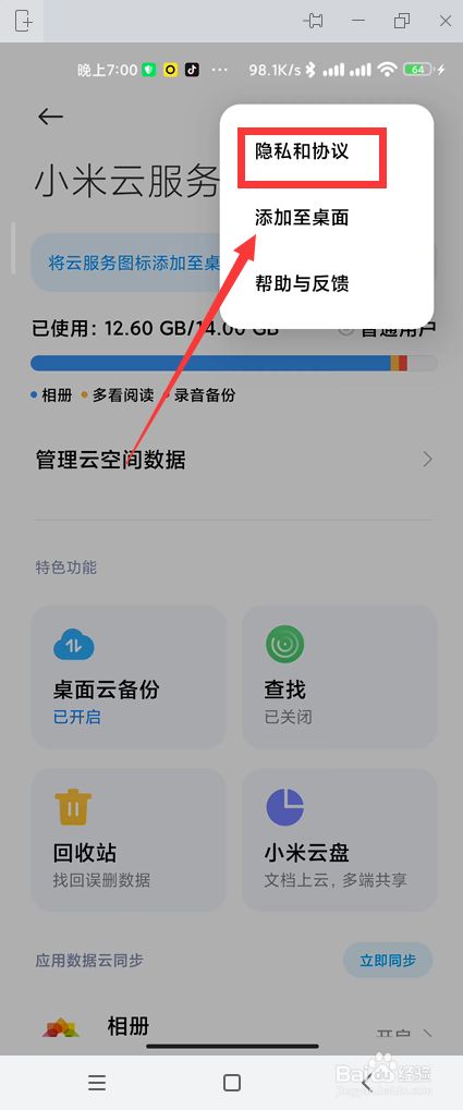 点击右上角三点,点击隐私和和谈。