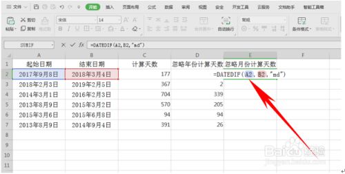 来计较忽略月份计较天数的方式,只需要将公式更改当作=DATEDIF(A2,B2,”md”),单击回车即可。