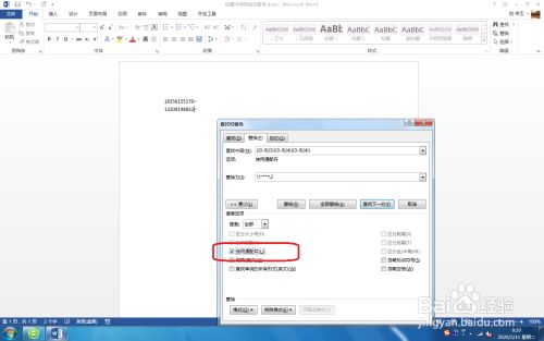 在查找区域中输入:([0-9]{3})[0-9]{4}([0-9]{4}),在替代中输入:\1****\2,然后选择【更多】,勾选利用通配符,如图。