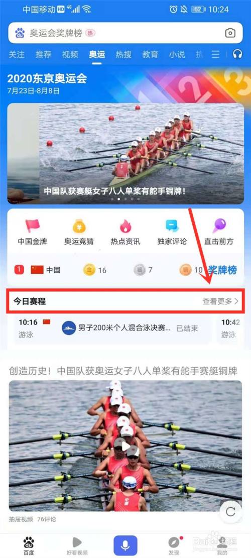 进入奥运频道,点击【今日赛程】右侧的【查看更多】。